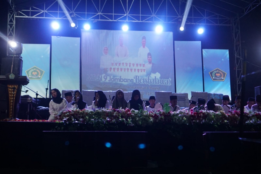 Jombang – MTsN 9 Jombang menggelar peringatan Maulid Nabi Muhammad SAW pada Kamis malam, 18 September 2025 dilapangan MTsN Jombang. Acara berlangsung meriah dan khidmat, Acara ini telah dihadiri kurang lebih 2.000 jamaah yang terdiri atas siswa, wali murid, guru, tendik serta masyarakat sekitar.Acara dibuka dengan penampilan seni tari Saman yang memukau, dilanjutkan dengan lantunan sholawat dari group banjari Al-Munjaz, serta kegiatan tasmi’ 1 juz oleh siswa-siswi pilihan MTsN 9 Jombang. Rangkaian pembuka ini berhasil mencuri perhatian hadirin sekaligus menambah nilai religius dan budaya pada peringatan tersebut.
